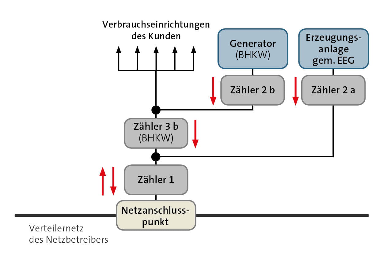 Grundsätzlich benötigen Erzeugungsanlagen für die ins Netz eingespeisten Mengen einen Übergabezähler. Gegebenenfalls wird zusätzlich ein Zähler für die von Ihrer Anlage, z.B PV-Anlage erzeugten Mengen benötigt. Nachfolgend finden Sie die Rahmenbedingungen für Zähler direkt an der Anlage. Bedenken Sie dabei auch eventuell spätere Änderungen beziehungsweise Erweiterungen der Anlage.